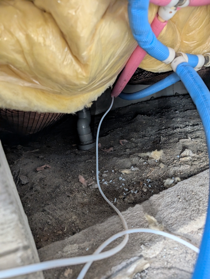 床下からパイプを確認するとポリブデン製のパイプで配管されていましたのでスチーム機での解氷作業をいたしました。