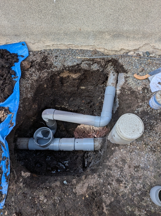 直ぐにお見積りして土は戻さずにご検討してもらい、2日後には工事依頼の連絡を受けましたが、このホルムズ海峡の閉鎖の影響でパイプなど出荷規制が入っていて材料を揃えるのに数日かかり、一週間以上待ってもらい本日工事となりました。